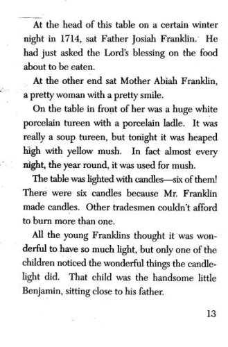 Using simple language that beginning readers can understand, this lively, inspiring, and believable biography looks at the childhood of Benjamin Franklin, as he embarked his adventures as a young printer.