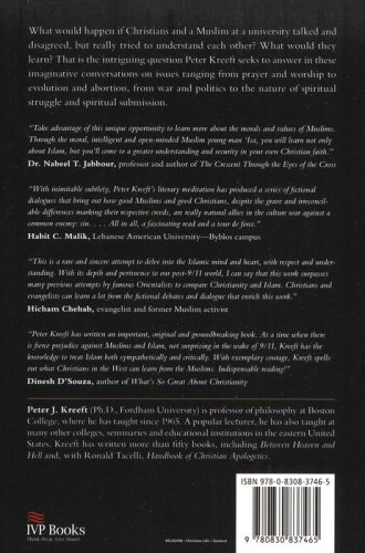 What would happen if Christians and a Muslim at a university talked and disagreed, but really tried to understand each other? What would they learn? That is the intriguing question Peter Kreeft seeks to answer in these imaginative conversations at Boston College. An articulate and engaging Muslim student named 'Isa challenges the Christian students and professors he meets on issues ranging from prayer and worship to evolution and abortion, from war and politics to the nature of spiritual struggle and spiritual submission. While Kreeft believes Christians should not learn extremism or unitarian theology from Muslims, he does believe that if we really listened we could learn much about devoted religious practice and ethics. Here is a book to open your understanding of one of the key forces shaping our world today. It's a book that just could make you a better Christian.