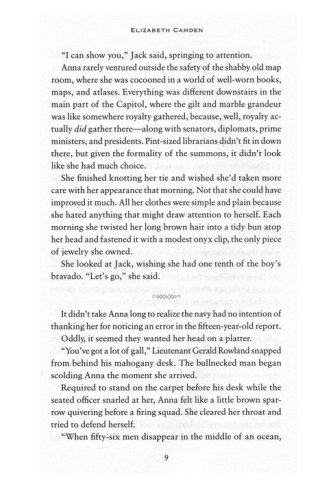 Luke Callahan was one of the nation's most powerful congressmen before his promising career was shadowed in scandal. Eager to share in a new cause and intrigued by the winsome librarian, he joins forces with Anna to solve the mystery of the lost ship. Opposites in every way, Anna and Luke are unexpectedly drawn to each other despite the strict rules forbidding Anna from any romantic entanglements with members of Congress.