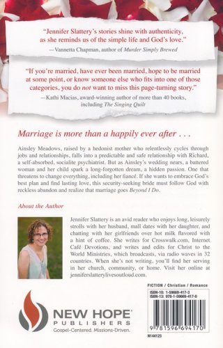 Marriage . . . it's more than a happily ever after. Eternally more. Ainsley Meadows, raised by a hedonist mother, who cycles through jobs and relationships like wrapping paper on Christmas morning, falls into a predictable and safe relationship with Richard, a self-absorbed socialite psychiatrist. But as her wedding nears, a battered woman and her child spark a long-forgotten dream and ignites a hidden passion. One that threatens to change everything, including her fiance. To embrace God's best and find true love, this security-seeking bride must follow God with reckless abandon and realize that marriage goes Beyond I Do.