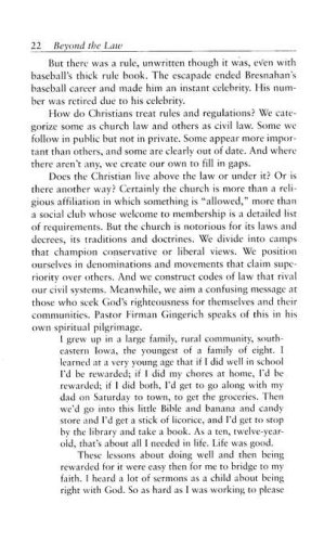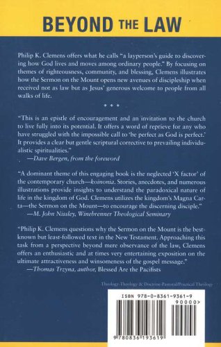 From all the rules the church preaches to the world, it's easy to assume that obeying the law is the measure of a Christian. But Jesus paints a different picture in his Sermon on the Mount. Beyond the Law considers that God's kingdom is based not on a code of law but on God's goodness and the bounteous love that God desires for the life of every Christian community. The Beatitudes open up new avenues of discipleship when received not as law but as Jesus' generous welcome to people from all walks of life. Author Philip K. Clemens offers what he calls "a layperson's guide to discovering how God lives and moves among ordinary people." Clemens helps Christians navigate these avenues by focusing on three themes-righteousness, community, blessing-that stand out in the Sermon on the Mount. Clemens illustrates how the Sermon on the Mount opens new avenues of discipleship when received not as law but as Jesus' generous welcome to people from all walks of life. 224 Pages.