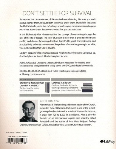 Overcome: Living Beyond Your Circumstances – Bible Study Book by Alex Himaya acknowledges that life’s circumstances can be overwhelming. And when people can’t change their circumstances, they just learn to survive them. That’s not the life Christ calls us to. While He doesn’t remove our hardships, He works through them and He equips us to rise above them. Using the biblical account of Joseph, this study helps group members move past simply surviving life’s adversities to overcoming betrayal, temptation, bitterness, and hard times. Great for Sunday School classes and small groups.