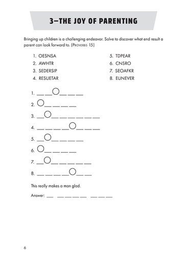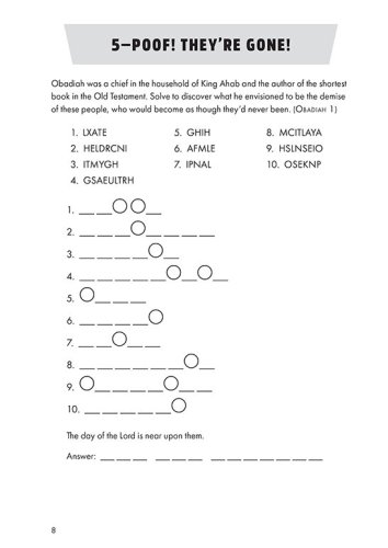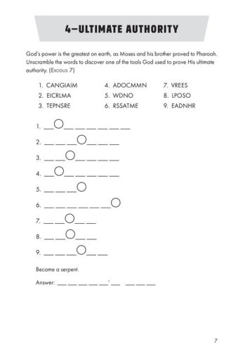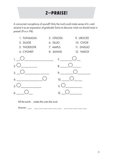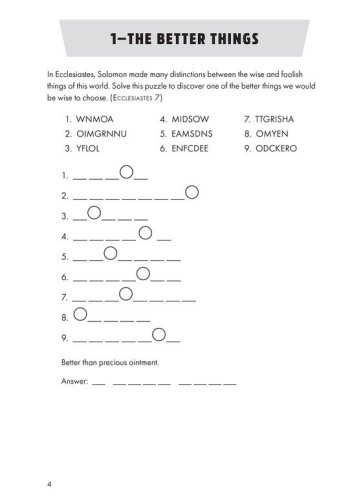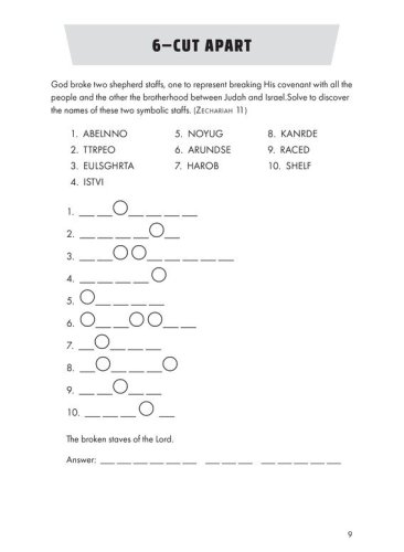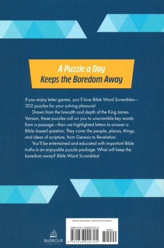 Here are 202 drawn from the breadth and depth of the King James Version. These puzzles resemble newspaper "Jumble" games—each calling you to unscramble key words from a passage, then use highlighted letters to answer a Bible-based question.