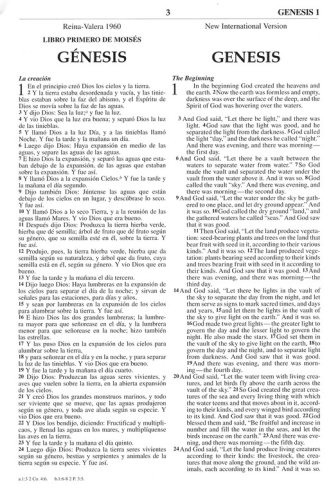 One identical message in two different languages and two different translations in the NIV and the RVR 1960 Bible. The Spanish Reina Valera 1960 Revision and the English New International Version are for the first time united in one single volume, giving you the opportunity of having two translations in two languages for a richer study of the Word of God.
