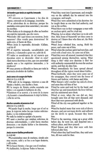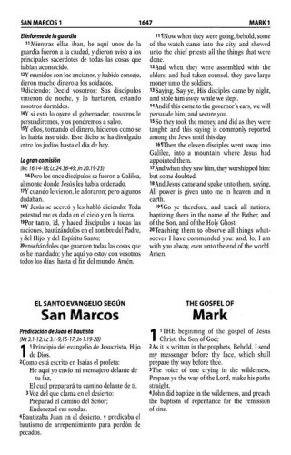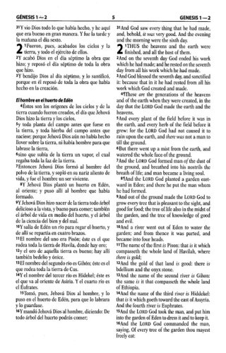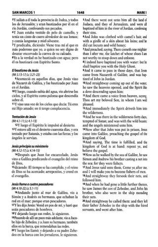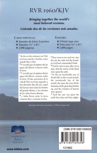 Características:Liviana y manuableTexto a dos columnasTextos introductorios a ambas versionesLetra de 9 puntos5 ¼ x 8 ¼ pulgadas2.080 páginasTwo of the most beloved translations, the Reina-Valera 1960 and the King James Version have been brought together in this elegant bilingual edition. Ideal for those who prefer to relate the sacred texts in Spanish and English. This edition commemorates the 50 years of the Reina-Valera 1960. Softcover.