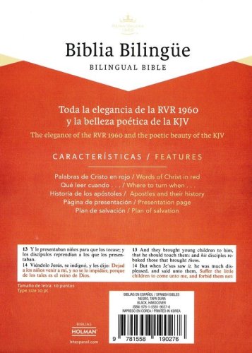 A bilingual Bible, Spanish and English, that combines the elegance of the Reina Valera 1960 with the poetic beauty of the King James.