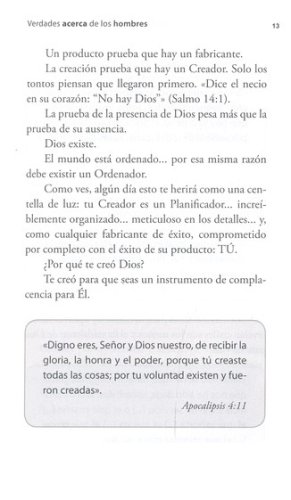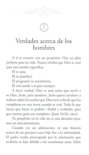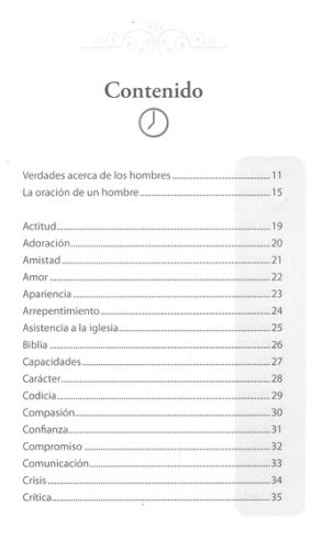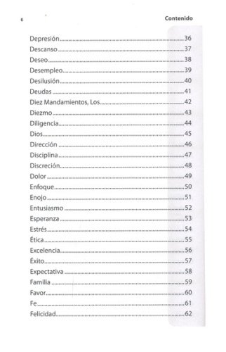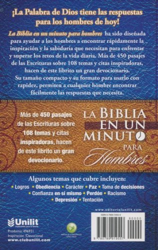 Este libro lleno de porciones bíblicas está diseñado, para ayudar al hombre de hoy, a encontrar rápidamente la inspiración y sabiduría que necesita para enfrentar y superar los retos de la vida diaria. Más de 450 pasajes de las Escrituras, divididos en 108 temas diferentes.