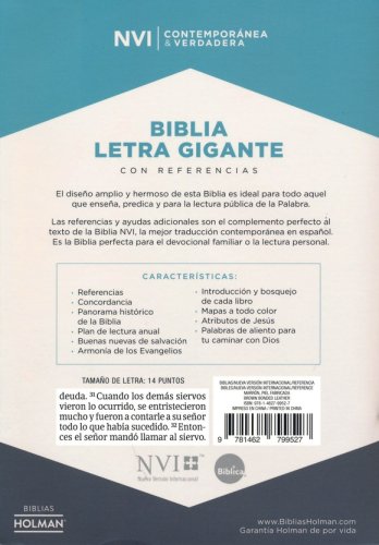 The references and additional tools are the perfect complements to the text of the NVI Bible, the best contemporary translation in Spanish. It is the ideal Bible for family devotion or personal reading.