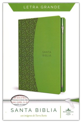 Biblia de tama o y letra grande, s mil piel verde, con cremallera. Incluye canto dorado, cinta marcadora y fotos a color de Tierra Santa.