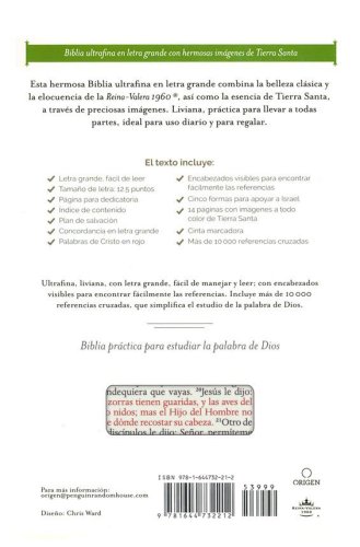 Su encuadernaci n de lujo, con p gina para dedicatoria, cinta marcadora y canto dorado, hacen que la Santa Biblia RVR 1960 sea ideal para el uso personal o para regalo. Con letra grande y las palabras de Cristo destacadas en rojo, la Biblia incluye la esencia de Tierra Santa con preciosas im genes a todo color, que nos invitan a orar por el pueblo de Israel.