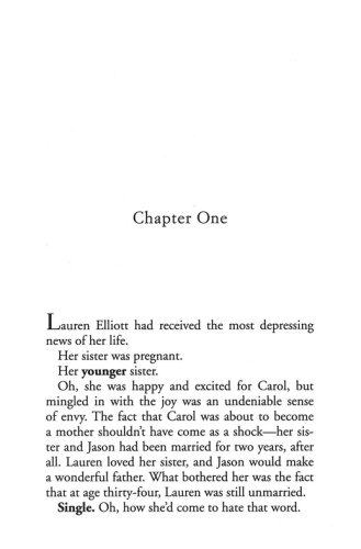 Lauren Elliott has waited years for her long-term boyfriend, Todd, to propose, yet he seems more focused on his career than their relationship. When Lauren learns that her younger sister is pregnant before she herself even has an engagement ring, she feels overjoyed yet disheartened. Knowing she can’t put her future on hold, Lauren prepares to make a bold choice—one that leads her to a man she never dreamed she’d meet.