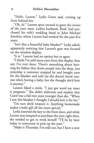 Debbie Macomber has won the hearts of millions of readers with her moving and inspiring stories. Now wedding bells are ringing in the tight-knit community that gathers around A Good Yarn, a store in a pretty Seattle neighborhood. Knitters come to the store to buy yarn and patterns but somehow they leave richer in friendship and love.
