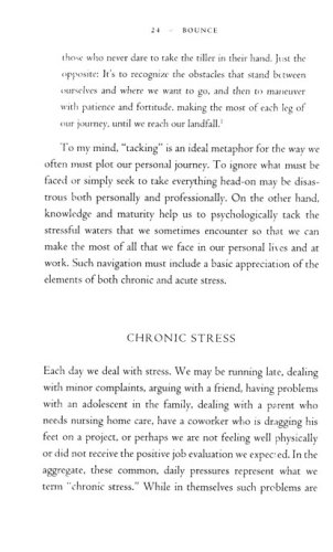 Most important, Bounce helps you develop your own self-care protocol and personal renewal program, based on an honest assessment of your needs, life situation, and habitual ways of dealing–or failing to deal–with stress.