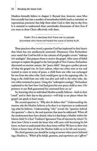 This insightful, reader-friendly book transcends traditional apologetics. It helps Christians understand what is deep in Muslims’ hearts, behind their theology—which will lead to friendship and effective communication; respectfully turn many of the primary objections into opportunities to share the faith; and avoid unnecessarily offending Muslims they’re interacting with.