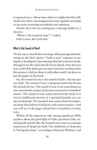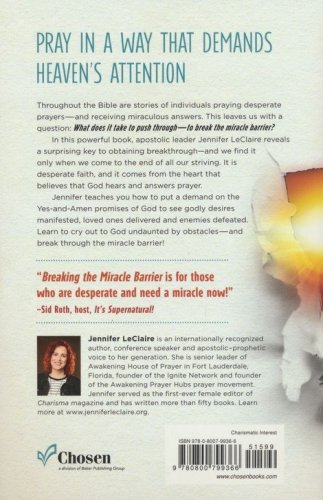 In this powerful new release, apostolic leader Jennifer LeClaire reveals a surprising key to obtaining breakthrough, veiled in the prayer lives of people crying desperately to see godly desires manifested, loved ones delivered, and enemies defeated. She teaches believers how to cry out to God, and how to sustain the desperate kind of faith undaunted by obstacles, opposition, and odds–prayer in faith that breaks the miracle barrier.