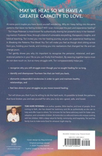 In Breaking the Patterns That Break You, bestselling author Tori Hope Petersen shares the profound ways she finally found relief and healing from the pain of her past, and how you can too. Tori gently shows you why it's important to recognize the destructive personal, relational, and generational patterns in your life so you can finally find freedom. As Tori weaves together vulnerable storytelling, therapeutic insights, and biblical teaching, you will feel as though she's sitting across from you, holding your hands, and inviting you into a journey that changed her life and can change yours. You will learn how to: