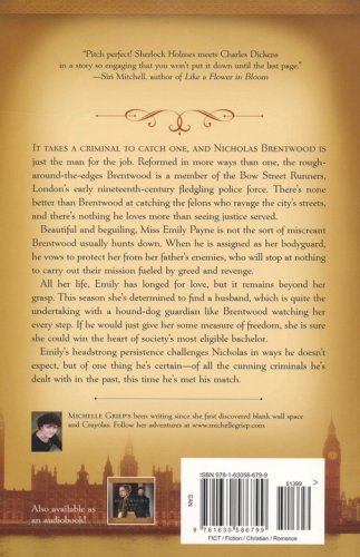 It takes a criminal to catch one, and Nicholas Brentwood is just the man for the job. Reformed in more ways than one, the rough-around-the-edges Brentwood is a member of the Bow Street Runners, London’s early nineteenth-century fledgling police force. There’s none better than Brentwood at catching the felons who ravage the city’s streets, and there’s nothing he loves more than seeing justice served.  Beautiful and beguiling, Miss Emily Payne is not the sort of miscreant Brentwood usually hunts down. When he is assigned as her bodyguard, he vows to protect her from her father’s enemies, who will stop at nothing to carry out their mission fueled by greed and revenge.
