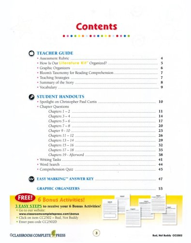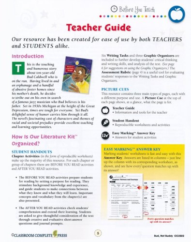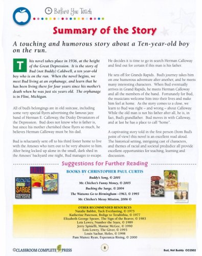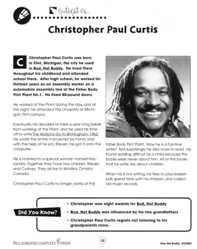 Please Note: the book Bud, Not Buddy by Christopher Paul Curtis is required and not included with this study guide.