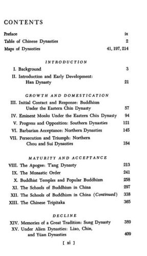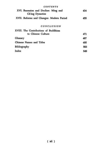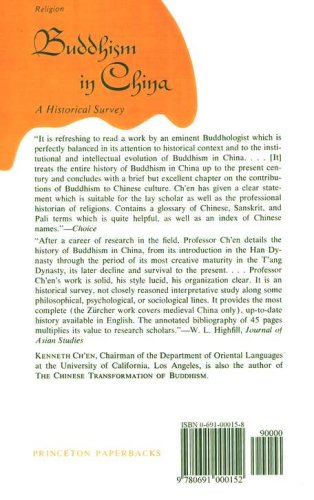 This book treats the entire history of Buddhism in China up to present century and concludes with a brief but excellent chapter on the contributions of Buddhism to Chinese culture. Ch'en has given a clear statement which is suitable for the lay scholar as well as the professional historian of religions. Contains a glossary of Chinese, Sanskrit, and Pali terms which is quite helpful, as well as an index of Chinese names.