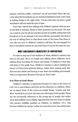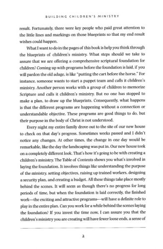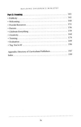Building Children's Ministry is a practical guide through the challenging (but exciting) steps between recognizing the need for children's ministry and creating a program that ministers to children and their families.