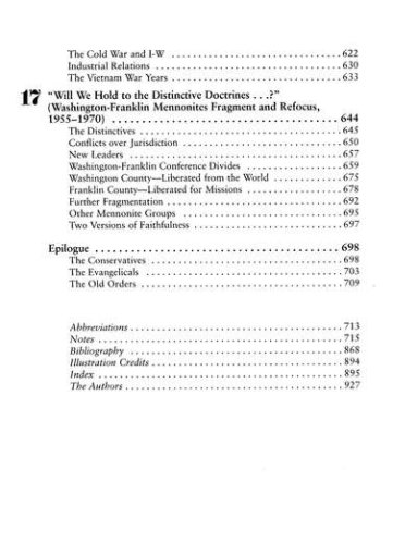 Edsel Burdge Jr. and Samuel L. Horst tell the stories of three centuries of faith and life among the Washington County (Md.), and Franklin County (Pa.) Mennonites. From small beginnings in colonial American settlements, issues such as personal spiritual commitment, corporate accountability, nonconformity, and peace have been constants. As questions of language, fashion, work, education, and mission produced internal stresses, they struggle to maintain group unity. This history describes in detail the particulars of that struggle as well as recounting stories illustrative of community life in general.