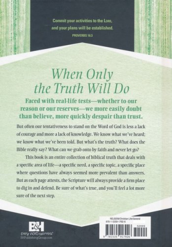This book is an entire collection of biblical truth that deals with a specific area of life—a specific need, a specific topic, a specific place where questions have always seemed more prevalent than answers. But as each page attests, the Scripture will always provide a firm place to dig in and defend. Be sure of what’s true, and you’ll feel a lot more sure of the next step.