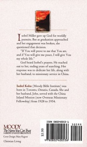 Isobel Miller gave up God for worldly pursuits. But as graduation approached and her engagement was broken, she questioned that decision. "If You will prove to me that You are, and if You will give me peace, I will give You my whole life." God heard Isobel's prayers and responded. He reached out to her, ending years of searching, and building her up for decades of fruitful missionary service with her husband, John Kuhn, in China.