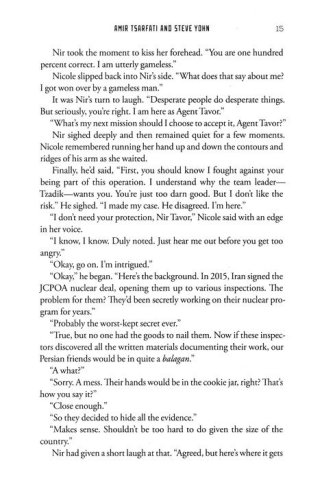 Nir and Nicole find themselves caught in a whirlwind plot of assassinations, espionage, and undercover recon, fighting against the clock to stop this threat against the Middle East. As they draw closer to danger—and closer to each other—they find themselves ensnared in a lethal web of secrets. Will they have to sacrifice their own lives to protect the lives of millions?