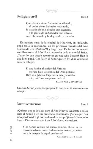 Corrie ten Boom sabía que iba a encontrar ayuda diaria en las Escrituras — ¡No importaba lo que ella estaba pasando! Sobre la base de los incidentes de su vida, estos 365 devocionales edificantes le recordarán de la victoria de los cristianos sobre el pecado, Satanás, y la muerte; de las maravillosas promesas de Dios; y de que el presente y el futuro están en Sus manos.