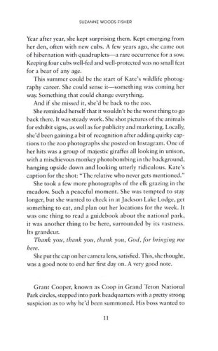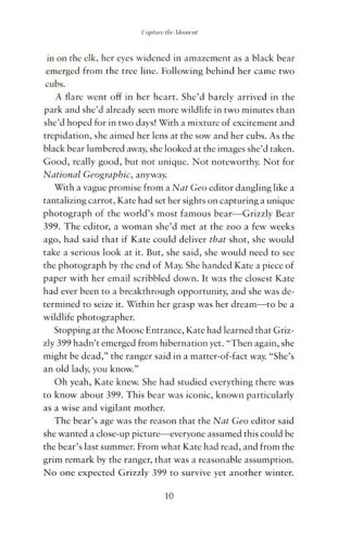 Kate Cunningham is facing the opportunity of a lifetime. As a zoo photographer, she's spent years photographing animals in carefully controlled environments, but now National Geographic has dangled an irresistible prize: If Kate can snag a unique photo of a legendary bear in Grand Teton National Park, they just might publish it. It's the kind of challenge Kate has been waiting for, and she's eager to prove herself in the wild.