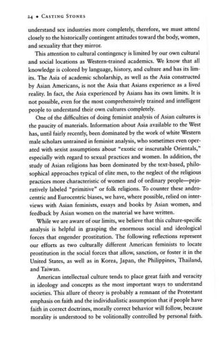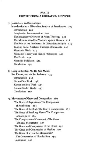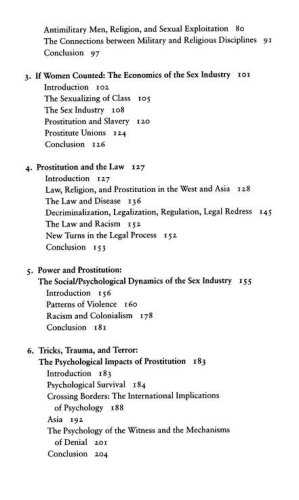 This structural analysis is then submitted to a theological critique of doctrines of sin and karma, the traditional rubrics under which religion (in this instance, Christianity and Buddhism) has considered prostitution. The heart of their project is rethinking the deeper cultural and religious notions of sexuality, power, and violence that undergird sexual exploitation. New approaches to prostitution through religious and social change are proposed.