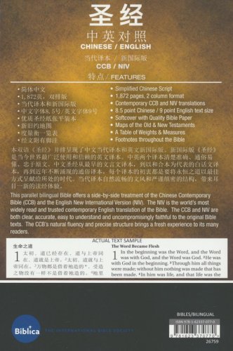 Featuring both the Chinese Contemporary Bible (CCB) in simplified script and the New International Version (NIV) in English, these translations are both clear, accurate, easy to understand, and uncompromisingly faithful to the original Bible texts.