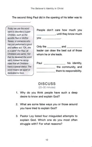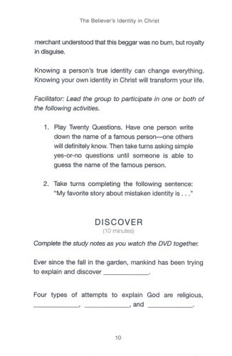 This companion guide to the Celebrate Colossians DVD study provides the additional resources you need for group study, interactive learning, and life application. You'll also find tips and techniques that allow a facilitator to lead an effective small group meeting with a minimum of preparation time. Or, you can use the DVD and participant guide for an exciting personal Bible study. Some sample questions are: •What do you think of when you hear the words God's will? •What do you think God's will is for your life specifically? •Paul said he was an apostle…by the will of God. How can you determine God's will for yourself? •Right now, what would you say your identity is connected with?
