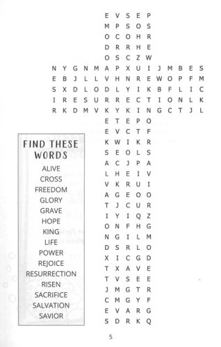Encouraging Scriptures and heartfelt devotionsWord findsMazesSpot the differenceColoring pagesSketch startersBreak-the-code puzzle