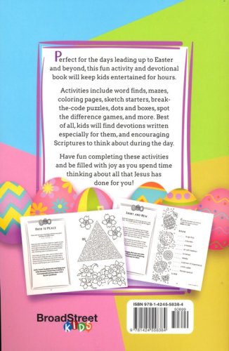 Activities include word finds, mazes, coloring pages, sketch starters, break-the-code puzzles, dots and boxes, spot the difference games, and more. Best of all, kids will find devotions written especially for them, and encouraging Scriptures to think about during the day.