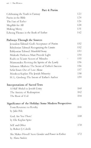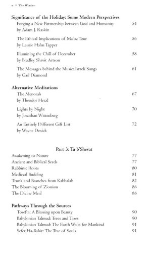 As we move from season to season, Paul Steinberg shares with us a rich collection of readings from many of the Jewish greats—Maimonides, Rashi, Nachmanides, Shlomo Carlebach, Marge Piercy, Elie Wiesel, Martin Buber, Abraham Joshua Heschel, Arthur Green, and others—and he guides us in discovering for ourselves the many treasures within each text. The readings teach us about the history of each holiday, as well as its theological, ethical, agricultural, and seasonal importance and interpretation; others give us inspiration and much food for thought.
