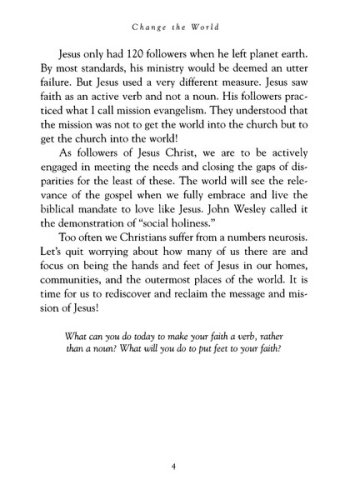 Everybody wants to change the world, and it all starts with a changed heart. As we grow closer to the heart of Christ, we learn to love others the way he did. Passion for justice and desire to serve flows naturally from a faith centered on the message and mission of Jesus: to bring good news to the poor, release to the captive, and sight to the blind. Grow in world-changing faith with six weeks of inspiring, challenging meditations by Mike Slaughter. Weekly themes: 1. Hearing Christ’s Call 2. Loving God’s People 3. Becoming a Disciple 4. Living Simply 5. Spreading the Word 6. Serving Courageously