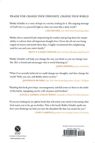 Are you stressed out, exhausted, or in a rut? Do you feel troubled by negative emotions and feelings and not in control of your thoughts? In Change Your Thoughts, Change Your World, Bobby Schuller shows you how to get out of the vicious cycle of defeat and start living the victorious life God intended. You can recalibrate your mind and develop positive habits for permanent change by meditating on twelve key thoughts, among them: