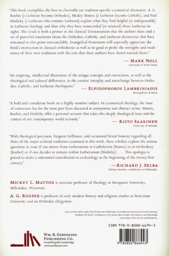 Here Mickey L. Mattox and A. G. Roeber address the most difficult questions Protestants face when considering such a conversion, including views on justification, grace, divinization, the church and its authority, women and ministry, papal infallibility, the role of Mary, and homosexuality. They also discuss the long-standing ecumenical division between Rome and the Orthodox patriarchates, acknowledging the difficult issues that still confront those traditions from within and divide them from one another.
