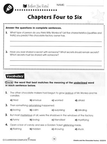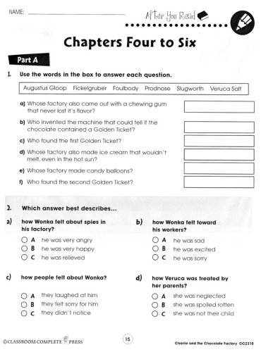 Please Note: the book Charlie and the Chocolate Factory by Roald Dahl is required and not included with this study guide.