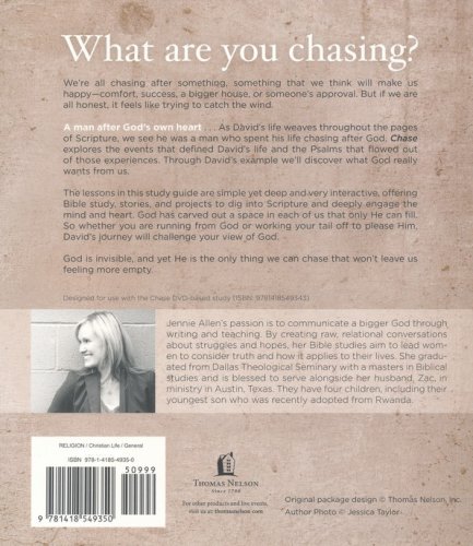 David's life shatters our ideas of what God wants from us. In Chase, Jennie shows us a man who spent his life chasing after God, which points to several things we shouldn't be chasing: