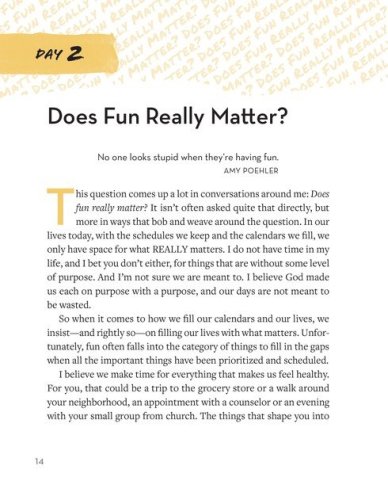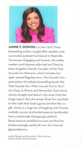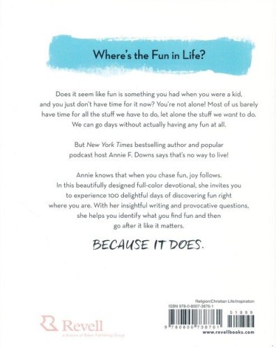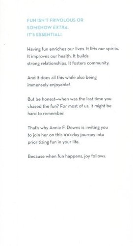 Annie knows that when you chase fun, joy follows. In this beautifully designed full-color devotional with a ribbon marker, she invites you to experience 100 delightful days of discovering fun right where you are. With her insightful writing and provocative questions, she helps you identify what you find fun and then go after it like it matters. Because it does.