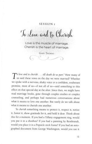 In this six-session video Bible study (DVD/digital video sold separately), bestselling author Gary Thomas draws on personal stories and teachings from the Bible to show how cherishing can have a powerful effect on marriage. Learning to truly cherish each other turns marriage from an obligation into a delight. It lifts marriage above a commitment to a precious priority. Cherish is the melody that makes a marriage sing.