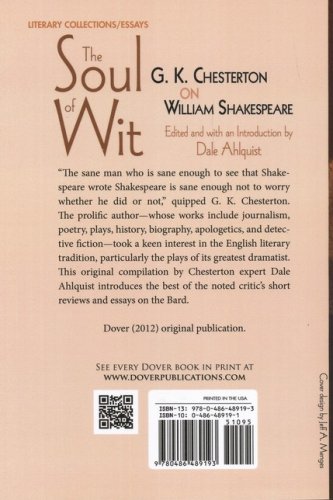 "The sane man who is sane enough to see that Shakespeare wrote Shakespeare is sane enough not to worry whether he did or not," quipped G. K. Chesterton. The prolific author — whose works include journalism, poetry, plays, history, biography, apologetics, and detective fiction — took a keen interest in the English literary tradition, particularly in the plays of its greatest dramatist. This original compilation by Chesterton expert Dale Ahlquist introduces the best of the noted critic's short reviews and essays on The Bard.