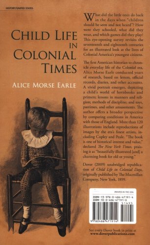 The first American historian to chronicle everyday life of the colonial era, Alice Morse Earle conducted years of research, based on letters, official records, diaries, and other accounts. A vivid portrait emerges, depicting a child's world of hornbooks and primers; lessons in manners and religion; methods of discipline; and toys, pastimes, and other amusements. The author offers a broader perspective by comparing conditions in America with those of England. More than 120 illustrations include reproductions of images by the era's finest artists, including Copley and Peale. "The book is one of historical interest and value," declared The New York Times, praising it as "beautifully illustrated [and] a charming book for old or young."