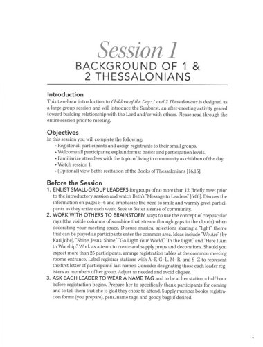 Join Beth Moore and walk the shores of Thessalonica with this verse-by-verse Bible study of 1 and 2 Thessalonians. This Leader Guide will help you lead a study of Children of the Day for groups in your church or community. You’ll find helps for planning and promoting the study and instructions for conducting nine group sessions.