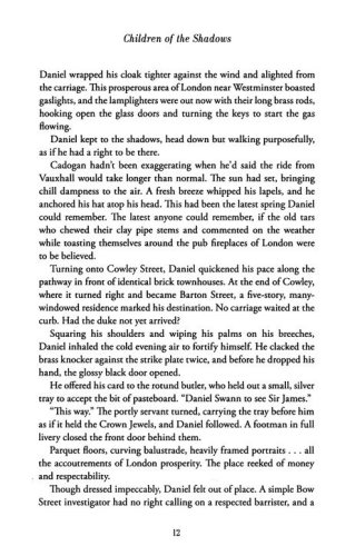 Daniel needs to do something about the missing children. But with recent revelations about his past and an unexpected, somewhat unwelcome inheritance to deal with, this is a terrible time to dive back into the seedy underbelly of the crime world. Nevertheless, he's still a Bow Street runner, and his partner Lady Juliette is sensitive to the plight of these wayward youngsters. They're on the case, searching shadowed alleys and coal-drenched streets to find the missing.