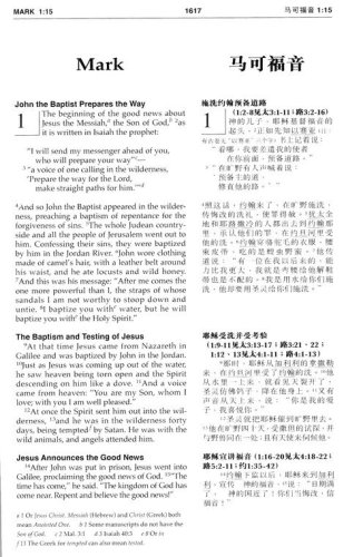 The CUV/NIV, Chinese/English Bilingual New Testament has added study helps, making this bilingual Bible perfect for outreach, personal use, those learning a second language, and translation comparison.