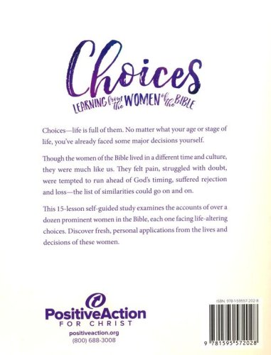 Choices leads you through the lives of women in the Bible who, despite living in a different time and culture, faced many of the same life-changing decisions that we do today. This 15-lesson self-guided study offers fresh, personal applications from the lives and decisions of notable women in the Bible. Inductive study questions encourage both individuals and groups to dive deep into the Word.
