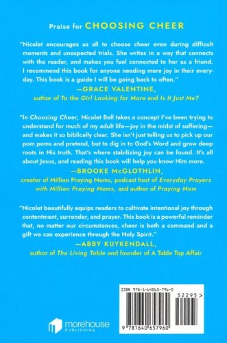 Do you know Jesus but wonder where joy is? Do you find joy when things are smooth sailing but when life gets choppy, does joy seem out of reach? Are you overwhelmed with the state of the world? In this thoughtful and uplifting guide, Nicolet Bell, who chooses cheer as her life’s guiding principle, helps us understand why we should choose cheer, she identifies what is stealing our cheerfulness, and she offers tools to help us choose cheer daily, even when life is challenging.